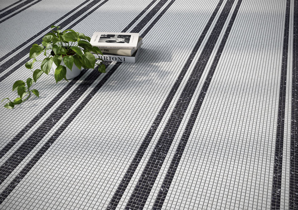 Bold geometric shapes. Vivid patterns. Smooth, monochrome paths. Let’s see how small-space floor tile transforms a room.